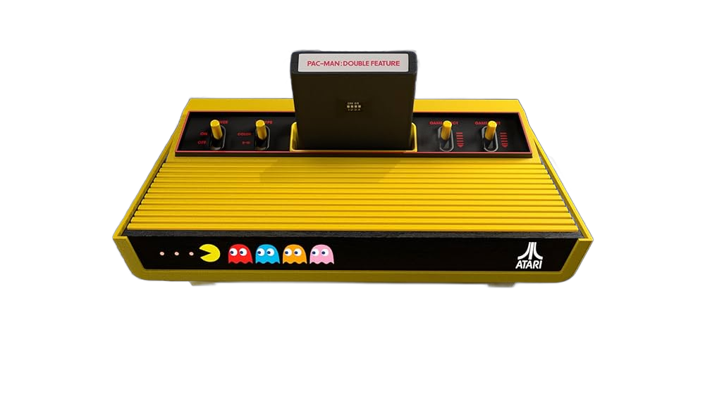 Console Atari 2600+ - Pac-Man Edition é uma edição especial limitada do console Atari 2600+ lançada para celebrar o icônico jogo Pac-Man. O Atari 2600+ é uma recriação moderna do clássico console Atari 2600 original (lançado em 1977), desenvolvido pela PLAION em colaboração com a Atari para oferecer compatibilidade com cartuchos originais enquanto adiciona funcionalidades modernas como saída HDMI, múltiplos modos de vídeo e controle de qualidade de vida. Esta edição Pac-Man apresenta design temático exclusivo com arte, cores e elementos visuais inspirados no jogo de arcade da Namco, tornando-se item de colecionador para fãs de Pac-Man e da era clássica dos videogames.